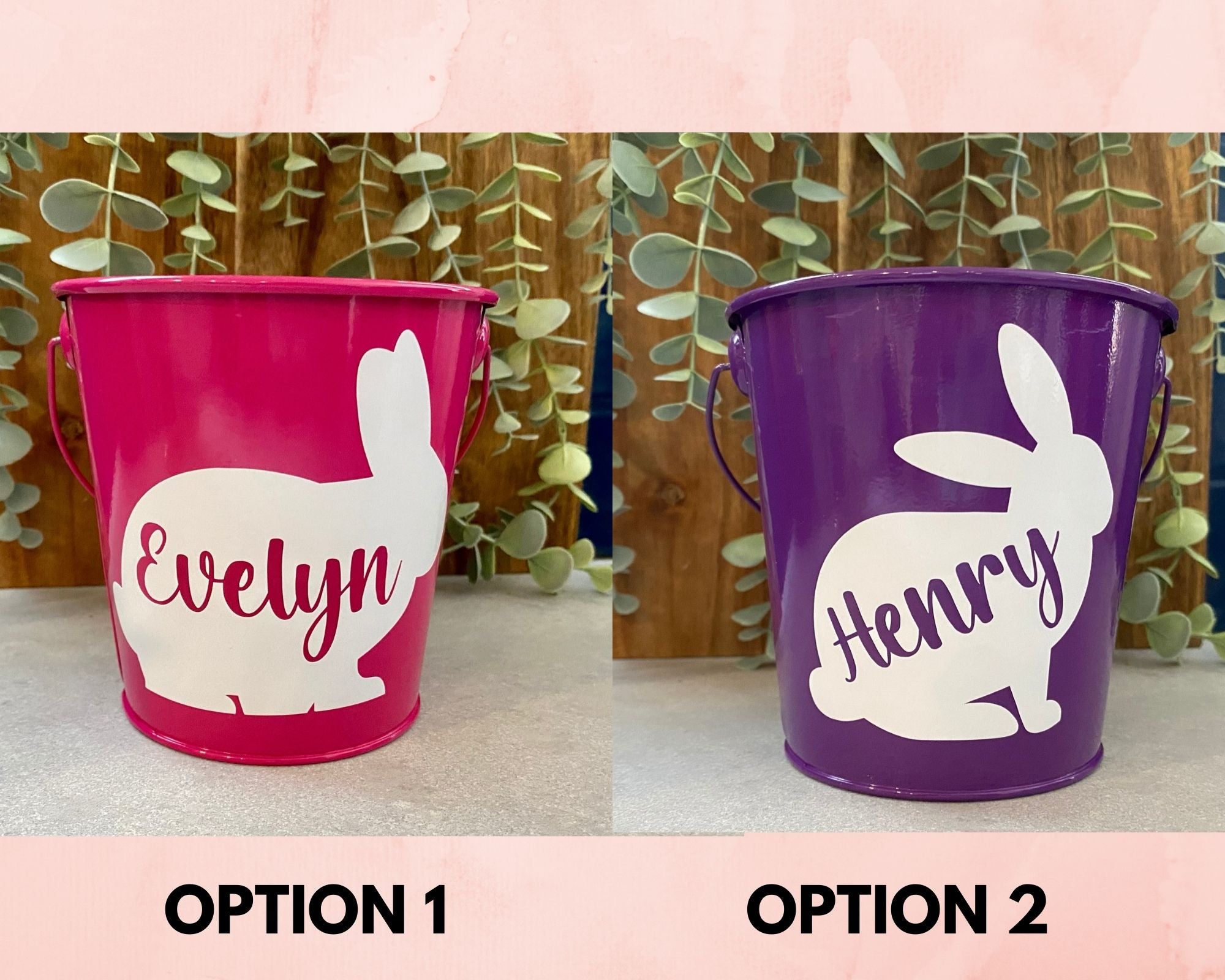These cute personalised Easter buckets are a perfect for keeping those Easter Eggs found during the egg hunt safe!